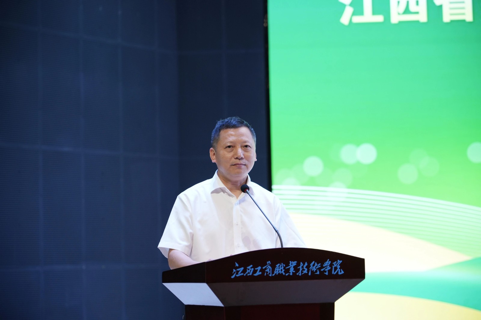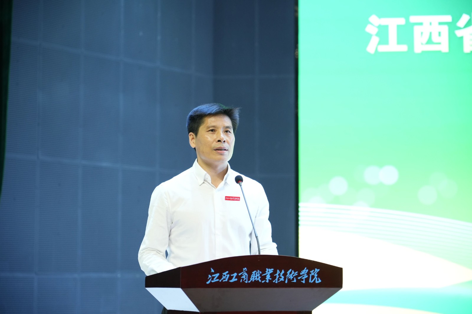 应露晨代表牵头职业院校致辞。他首先代表学校对莅会领导和嘉宾表示诚挚欢迎,向对江西省新能源汽车行业产教融合共同体成立给予支持指导的省教育厅、省工信厅以及参与共同体建设的各成员单位表示衷心感谢。他指出,江西省新能源汽车行业产教融合共同体的成立不仅是响应国家深化产教融合、校企合作战略部署的具体行动,也是落实教育强省建设任务、服务区域经济发展的重要举措。他表示,学校将携手江西江铃集团新能源汽车有限公司、华东交通大学,共同担当起牵头建设共同体的重任和使命,汇聚各方优势力量,推动新能源汽车行业人才培养、资源建设、技术研发和成果转化,为江西省新能源汽车产业的发展贡献力量。