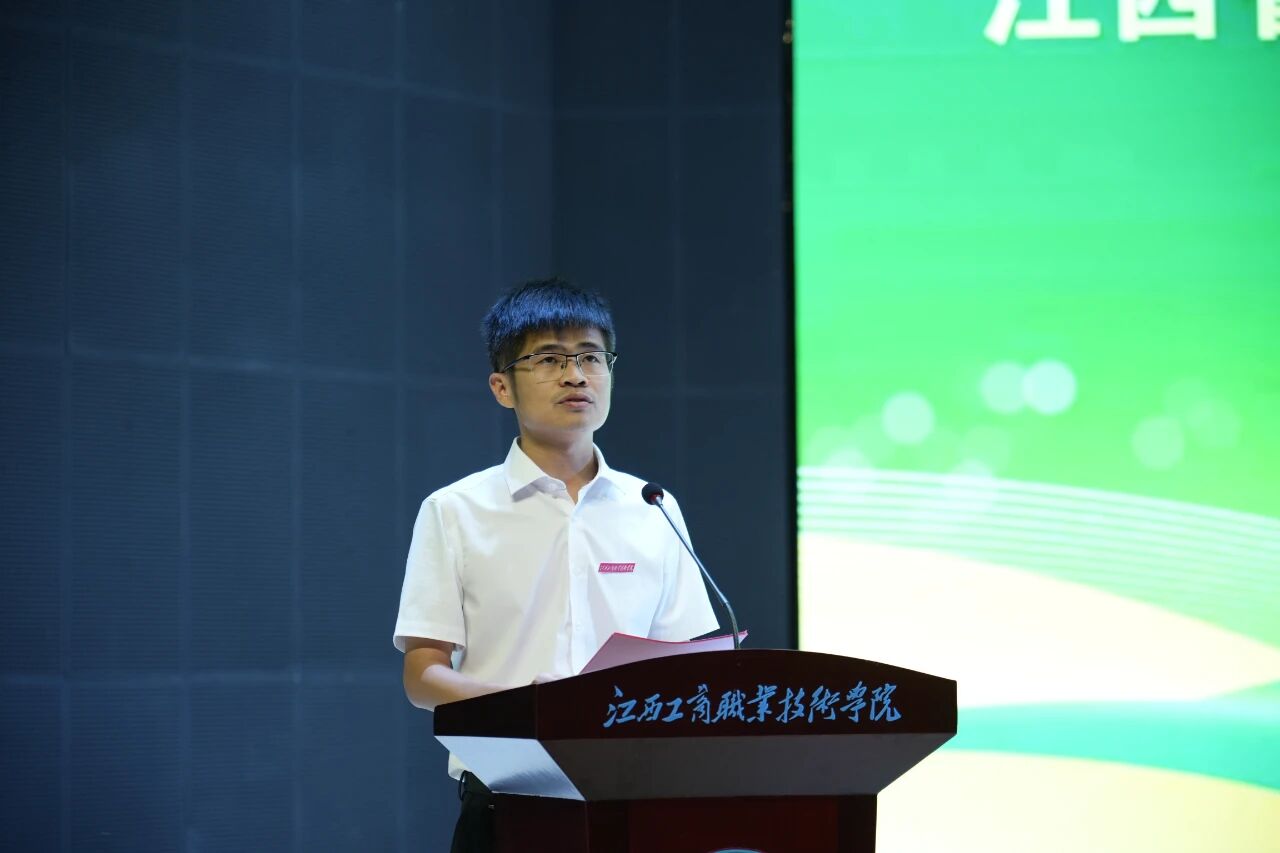 李碧讲话。他表示共同体成立是南昌县小蓝经开区新能源汽车产业发展的重大机遇,南昌县小蓝经开区作为江西工业强县和南昌产业核心板块,已集聚新能源汽车完整产业链企业,但产业向高端化、智能化发展面临人才瓶颈,而共同体为解决该问题搭建了优质平台。南昌县小蓝经开区将支持共同体成员单位相关项目,搭建常态化沟通平台推动企业与高校需求匹配,同时期待吸引更多优质主体加入,将区域打造成全省新能源汽车产业人才培养高地与产教融合示范标杆。