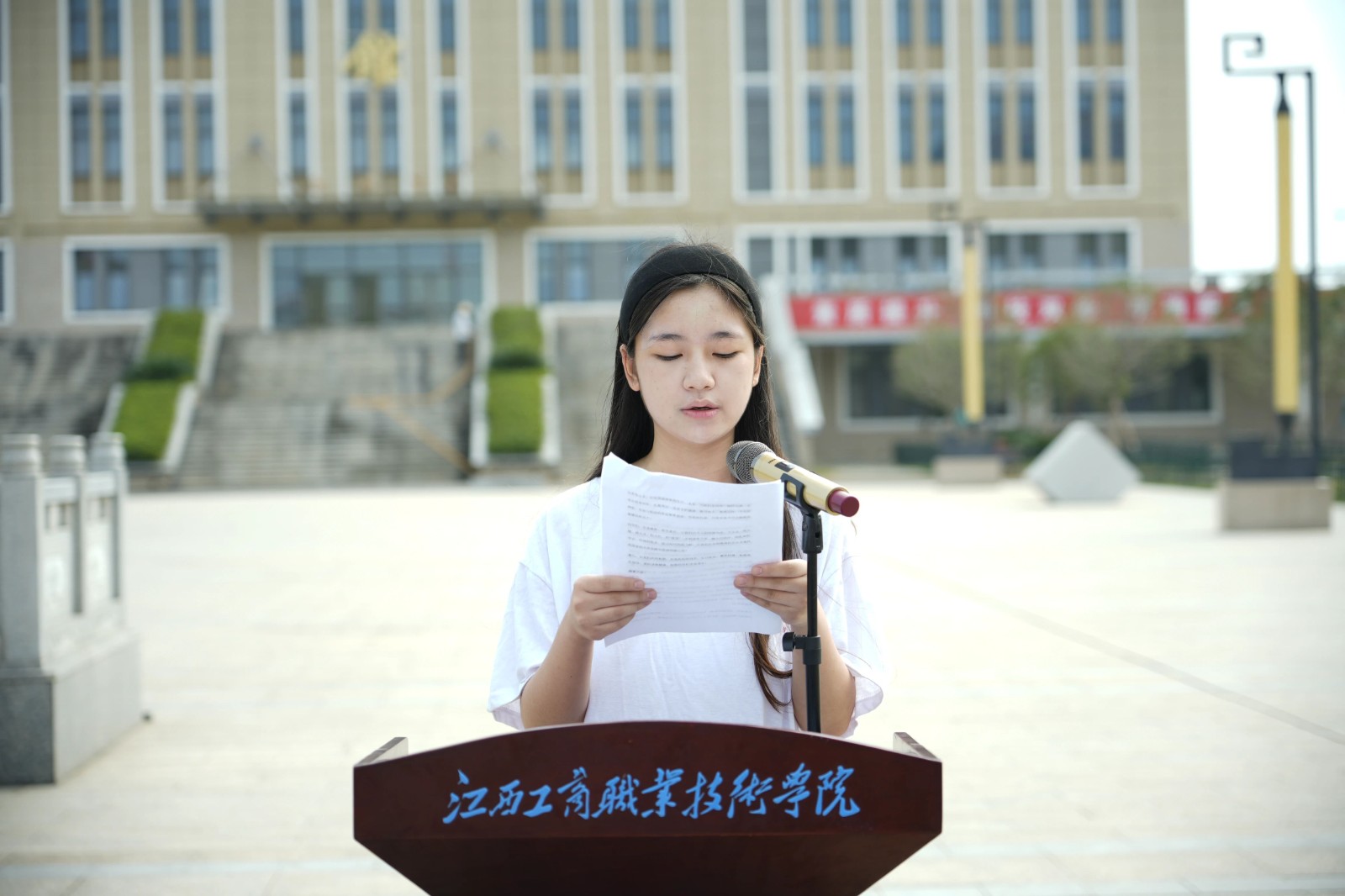 2024级护理7班王心雨同学作为学生代表发言。她结合自身专业学习与实践感悟,表达了新时代青年对“涵养家国情怀”与“投身复兴伟业”的理解。