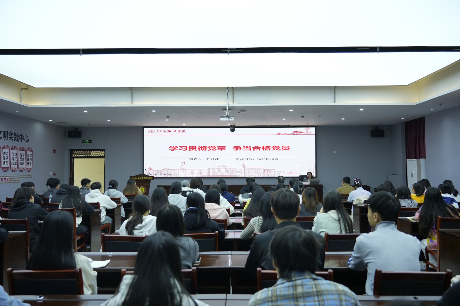 10月23日,江西服装学院党委书记林井萍莅校以《学习贯彻党章,争当合格党员》为题,给党员、发展对象、入党积极分子讲授党课。党委组织部负责人、各二级学院组织员参加。