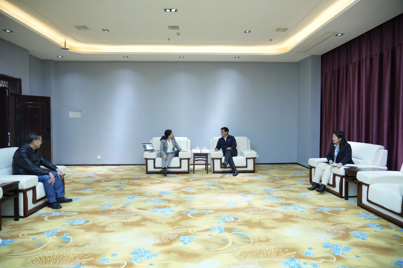 授课前,学校党委书记应露晨在第二接待室会见林井萍,双方就学校党建工作重点难点问题进行交流探讨。