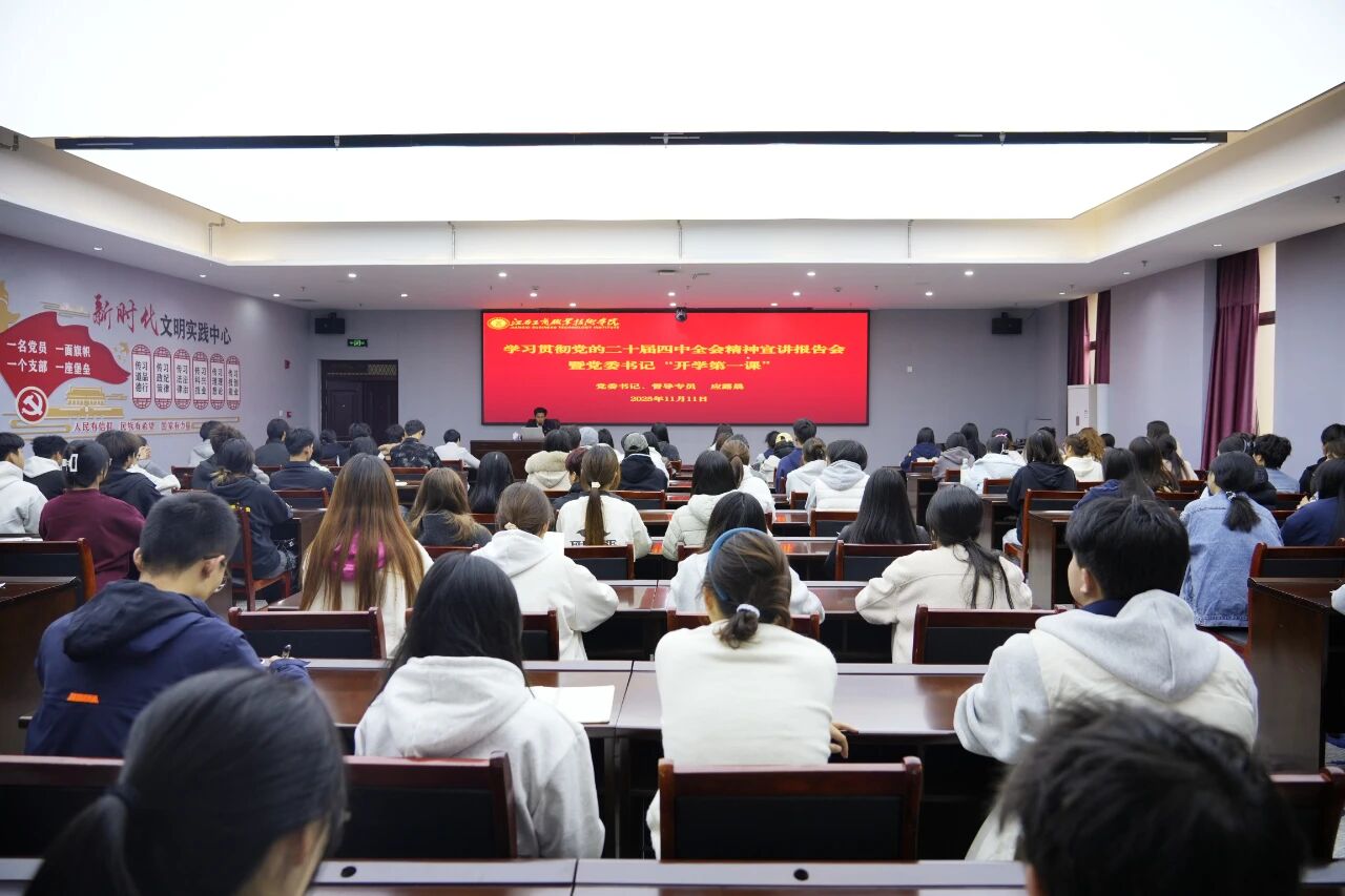 11月11日,学校在图书馆五楼学术报告厅举行学习贯彻党的二十届四中全会精神宣讲报告会暨党委书记“开学第一课”。学校党委书记应露晨以《深入学习贯彻党的二十届四中全会精神 争做挺膺担当的新时代好青年》为题,向青年学生宣讲党的二十届四中全会精神,讲授开学第一课。