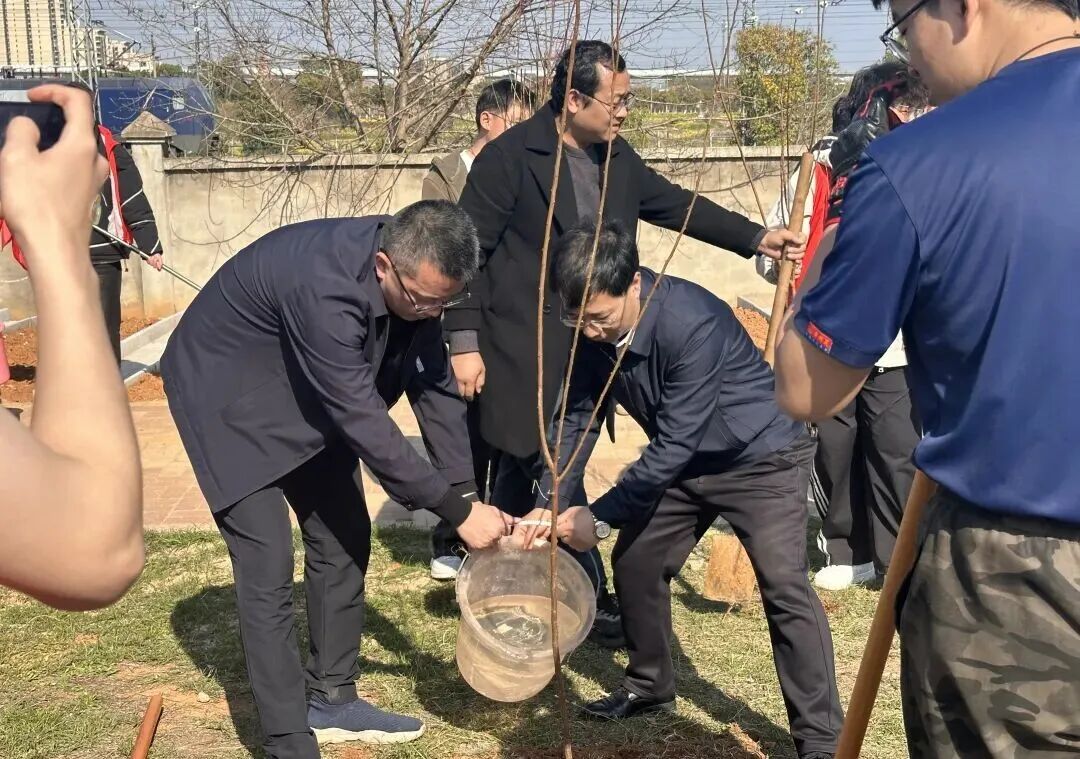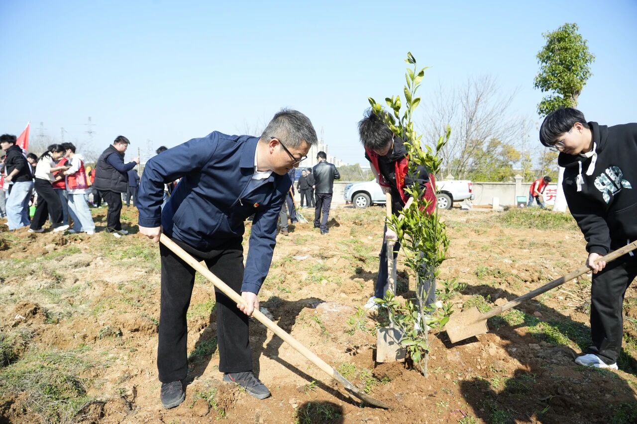春风拂新绿,植树正当时。在第48个植树节到来之际,3月12日,学校领导应露晨、彭隆辉、李盛艳、许亮、蔡红新、胡鹏飞等与职能部门负责人、师生代表共同开展2026年义务植树活动。