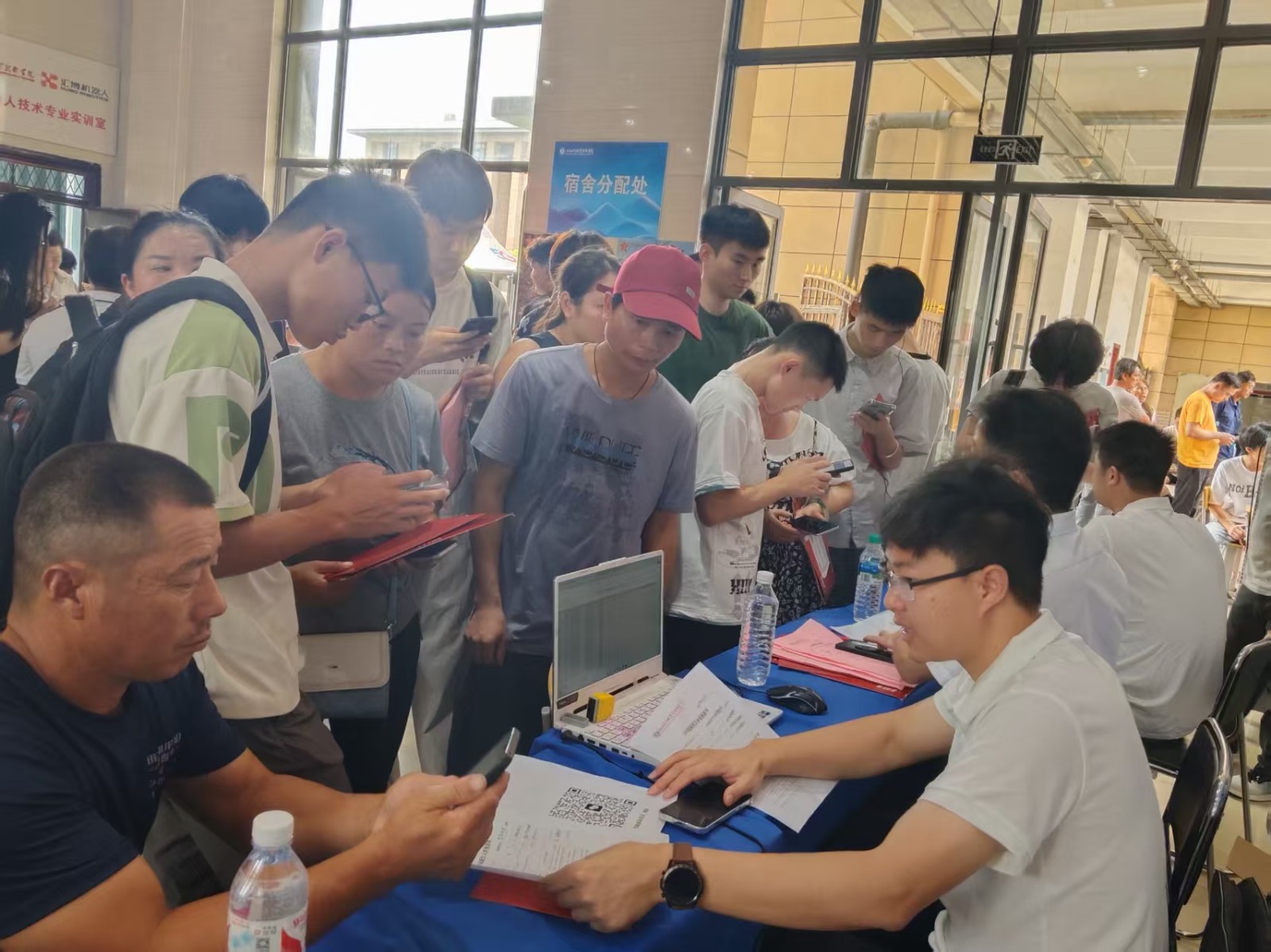 清晨七点,学院的辅导员和学生志愿者早已各就各位,在迎新点等候新生的到来。"同学你好,请这边登记""宿舍往这个方向走",亲切的问候与细致的指引消除了新生初来乍到的陌生感。志愿者们主动接过沉甸甸的行李,一路热情介绍校园环境,成为萌新们的第一位"校园向导"。