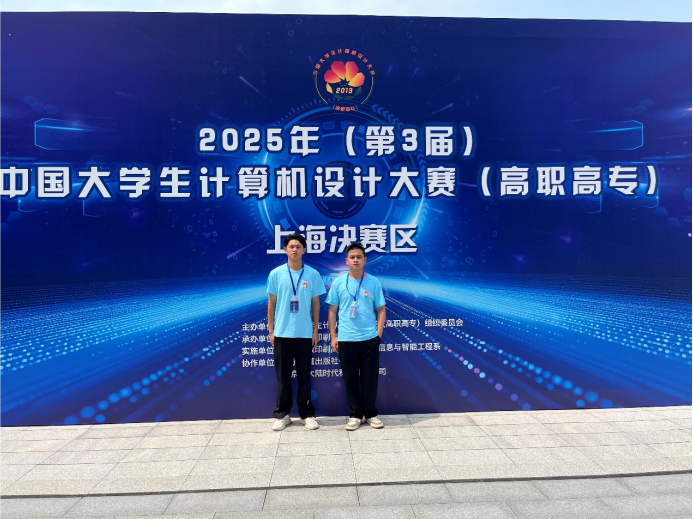 2025 年 8 月 3 日,我院学子在带队教师涂亮的带领下,奔赴上海出版印刷高等专科学校奉贤校区,参加 2025 年(第 3 届)中国大学生计算机设计大赛(高职高专)数媒静态设计竞赛。本次赛事汇聚了全国 19 个省市 173 所高职院校的 435 件作品,竞争异常激烈。经过四天的激烈角逐,我院两支参赛队伍凭借扎实的专业功底和出色的创意表现,最终荣获国赛三等奖 2 项,为学校赢得了荣誉。