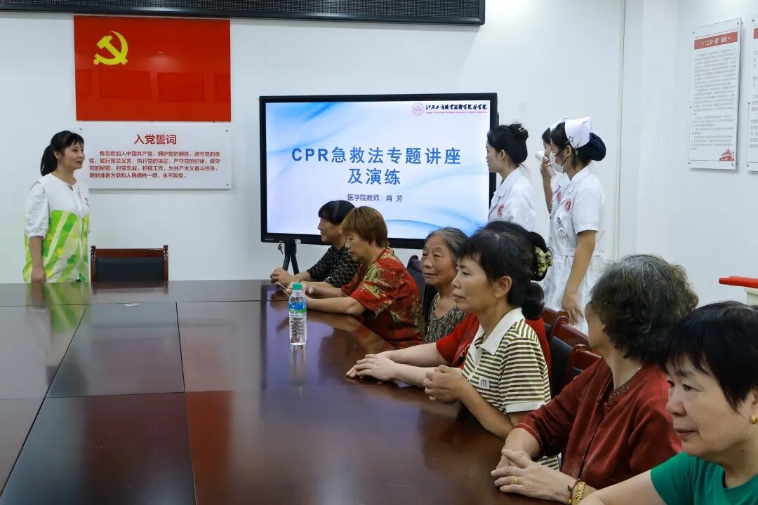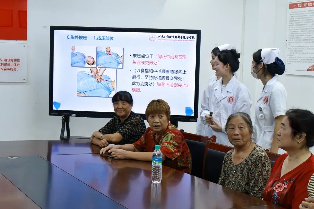 在活动过程中,穿插了多轮互动问答环节,鼓励社区居民积极提问,志愿者们耐心解答。随后,医学院的专职教师肖芳老师为社区居民普及心肺复苏知识,以及后续的实操。