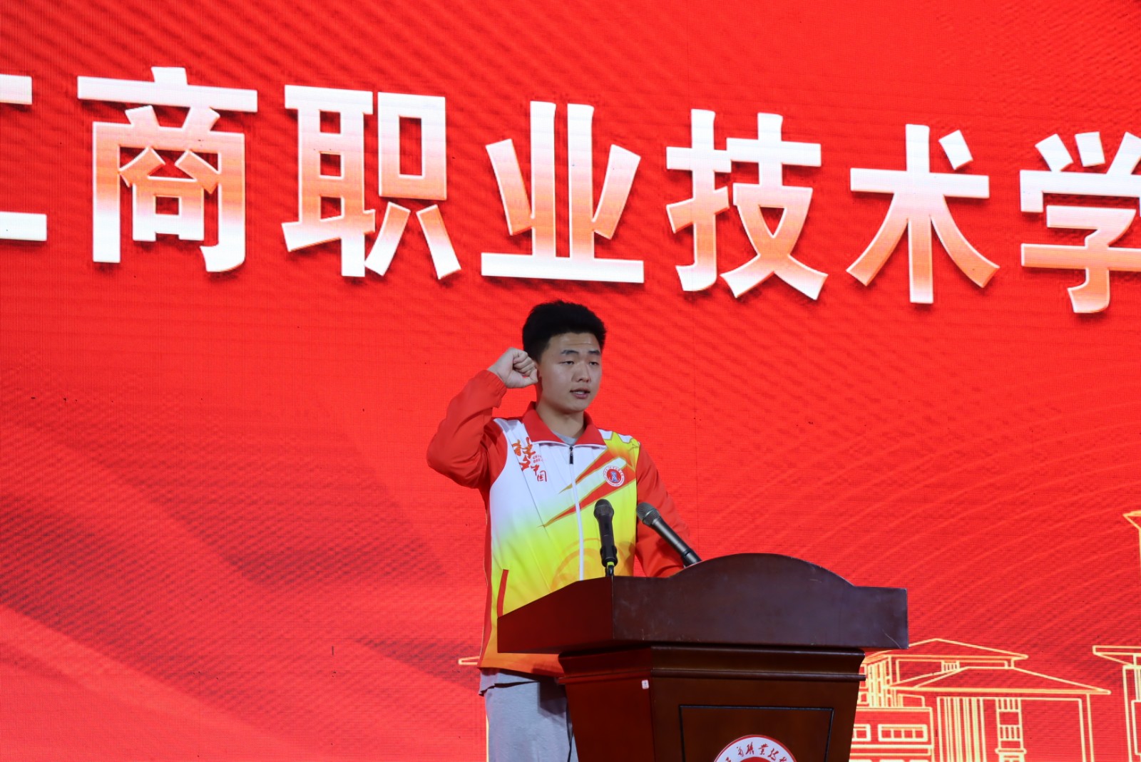 党委书记赵顶兴在运动会开幕式上宣布江西工商职业技术学院第十三届运动会开幕。