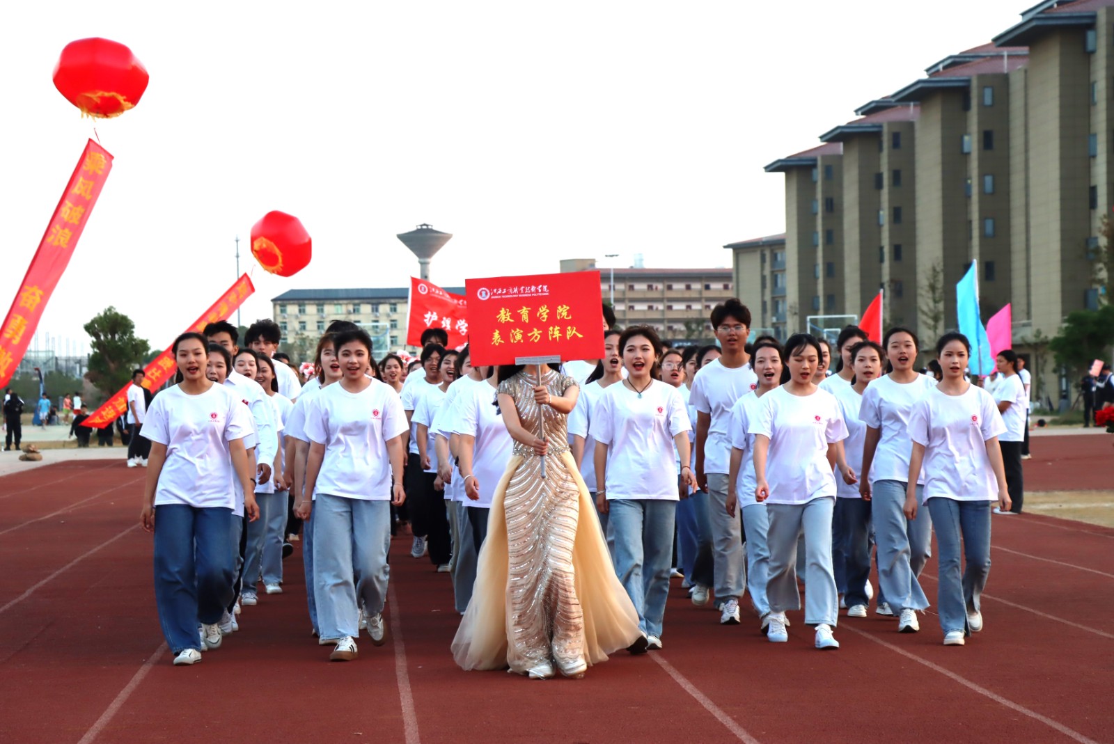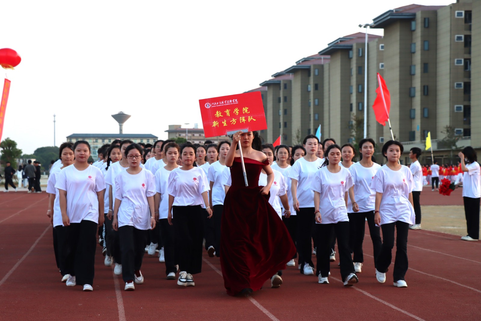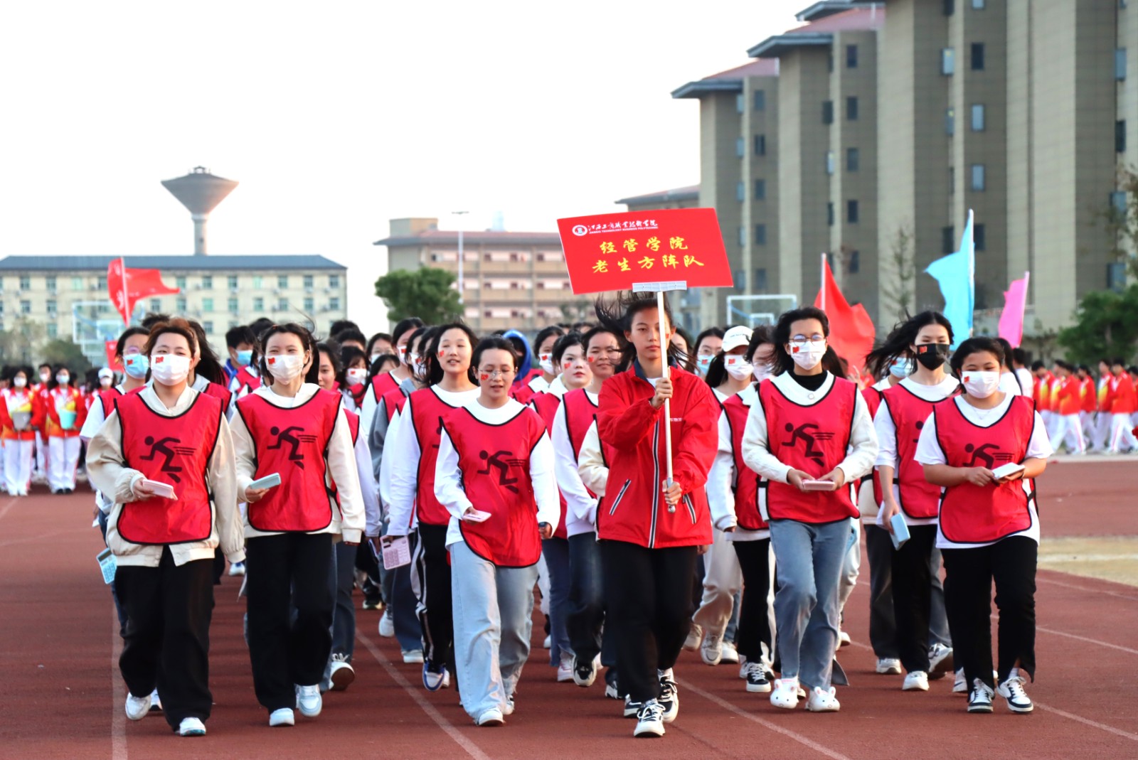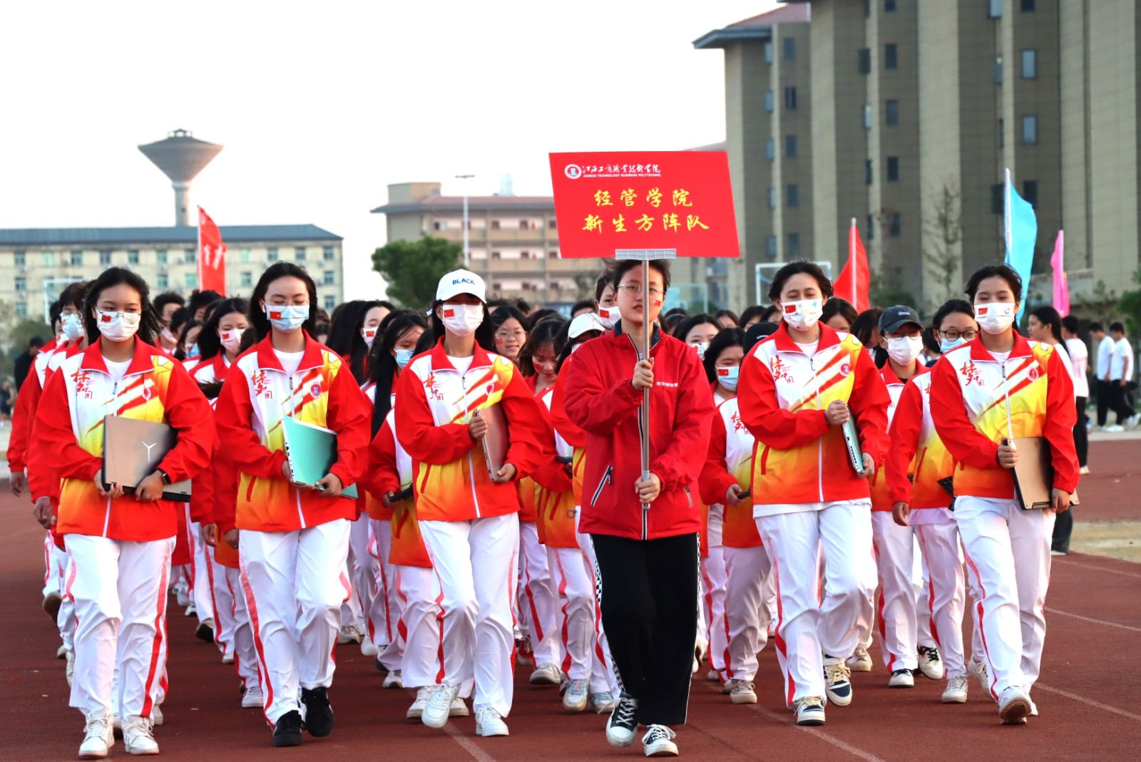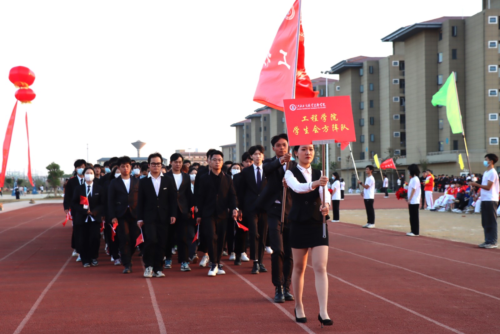 开幕式上,伴随着激昂奋进的旋律,各参赛代表队步入会场,解说员依次进行介绍,会场欢腾雀跃。首先入场的是国旗护卫队,他们衣着整齐,口号嘹亮,踏着铿锵有力的节拍,迈着坚定的步伐,高擎国旗、校旗和会徽走向主席台。随后入场的是各学院方阵,各方阵队用各具特色的方式展现出自己的专业特点,他们以最饱满的姿态、最自信的风采依次走过主席台,接受检阅,为大家带来一场场注入青春活力与创意想法的精彩表演。