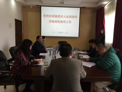 4月12日,南昌市人力资源和社会保障局职业能力建设处余运钢率第三组检查组成员一行来我校对资助工作进行了检查,并顺利通过。