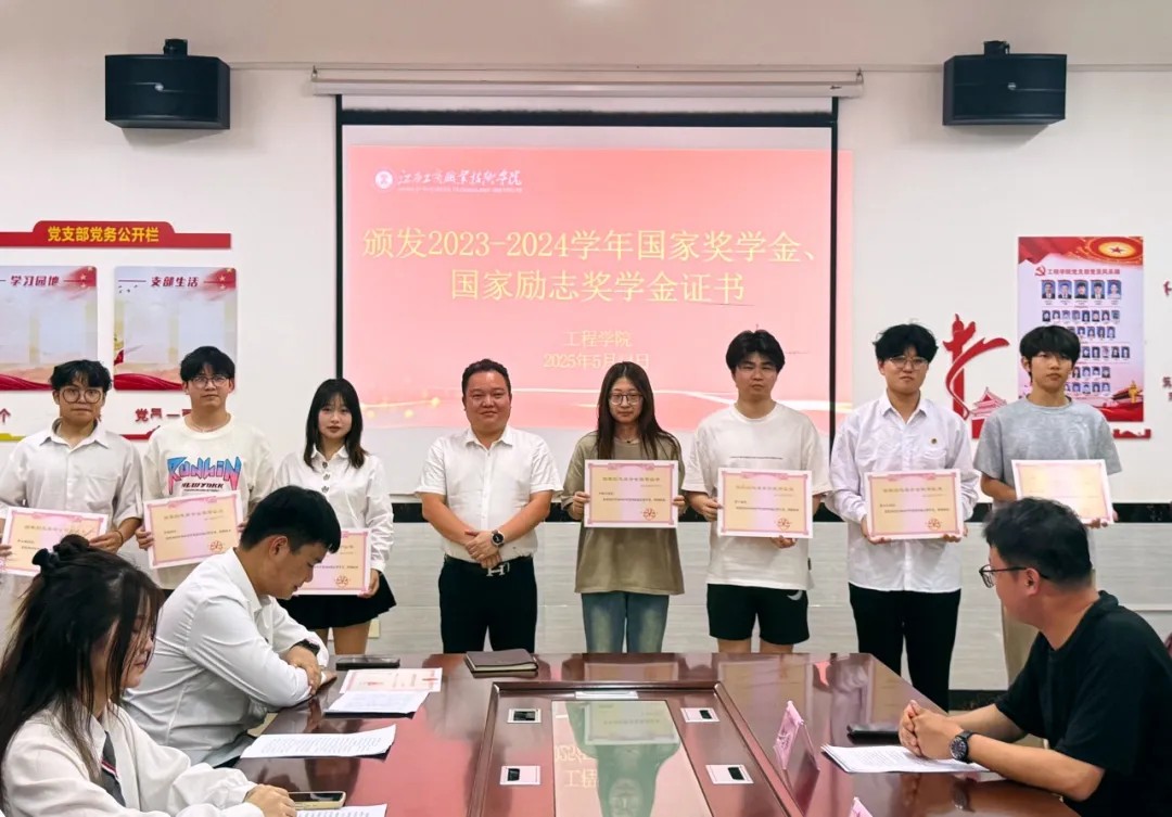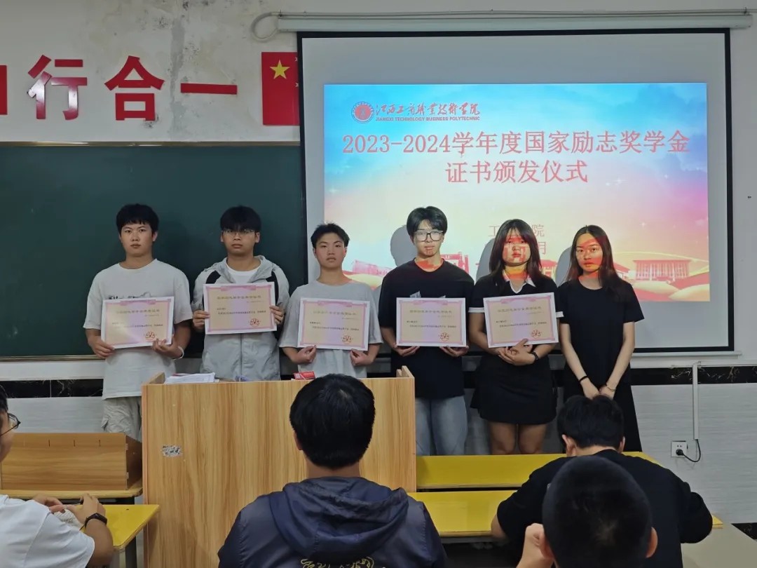 而后举行了2023-2024学年国家励志奖学金证书颁发仪式,学院党支部副书记刘勇为获奖学生颁发荣誉证书,充分肯定了他们上学年的努力和付出,并勉励他们再接再厉,以勤勉笃学的态度回报国家与社会。