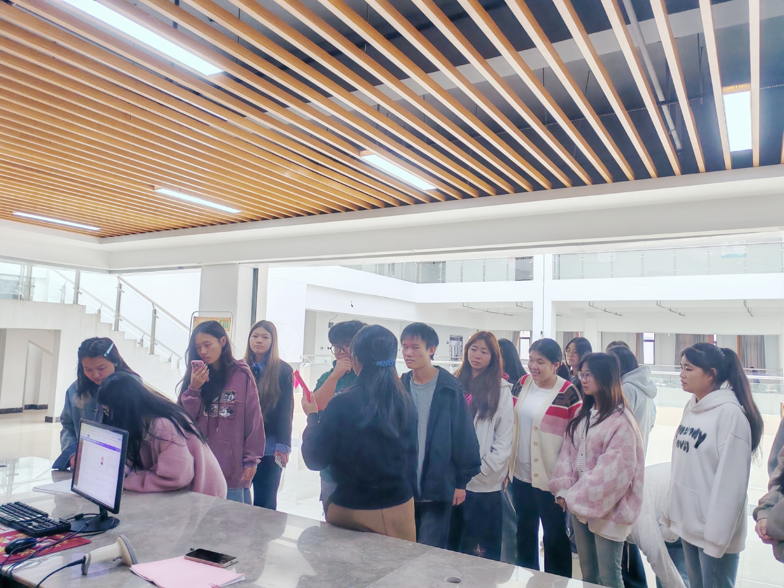 在电子阅览室的讲解环节中,图书馆蓝紫嫣老师系统介绍了图书馆的基本概况、馆藏资源布局、入馆须知、开放时间、图书借阅规则以及数字资源使用方法等内容,帮助新生全面认识图书馆的各项功能。讲解过程中,老师们还耐心解答了关于借阅权限、自习座位预约等常见问题,现场互动积极,气氛热烈。